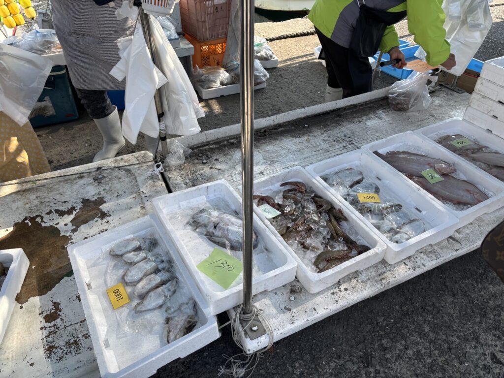ちなみに、営業時間直前に行くと売り切れている場合もあるので、営業開始時間の2時間前に行くと漁から帰ってきている船も多くなってくる時間なので、確実に魚などは買えます☝️