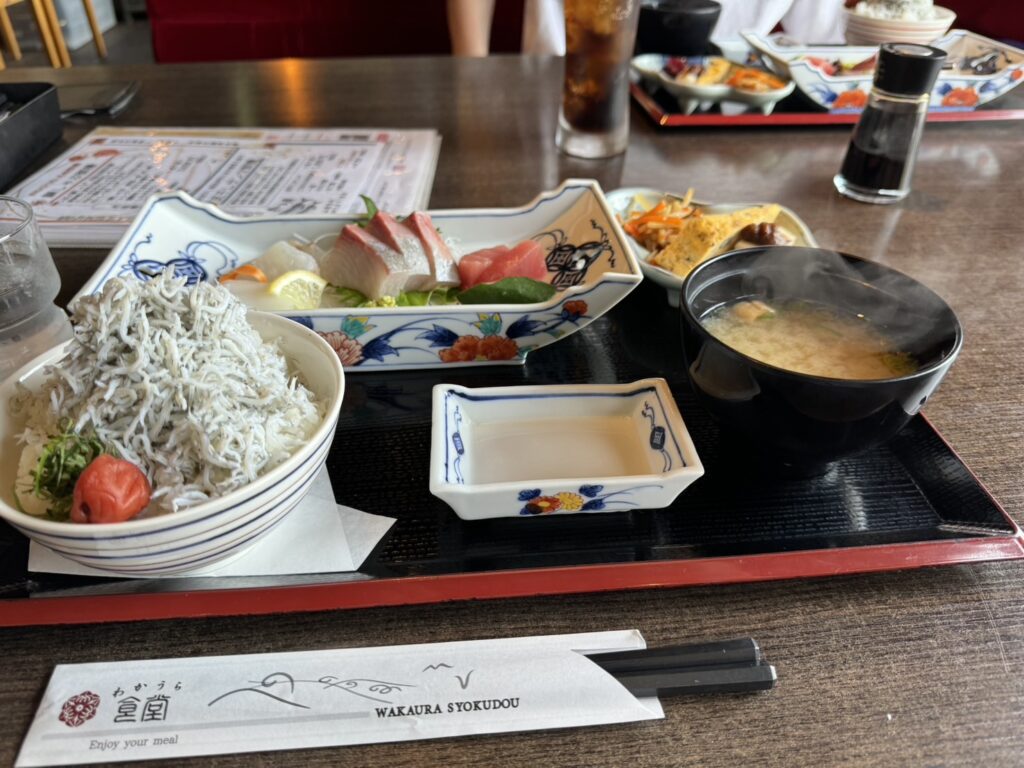 ご飯は、刺身定食にしらす丼を追加して食べました😋
